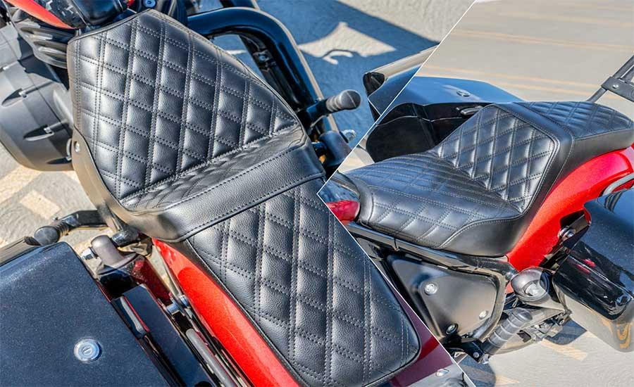 - 2-up seats: Designed for rider and passenger together. A good 2-up seat has a defined rider zone, lower-back support, and a wide padded rear section.